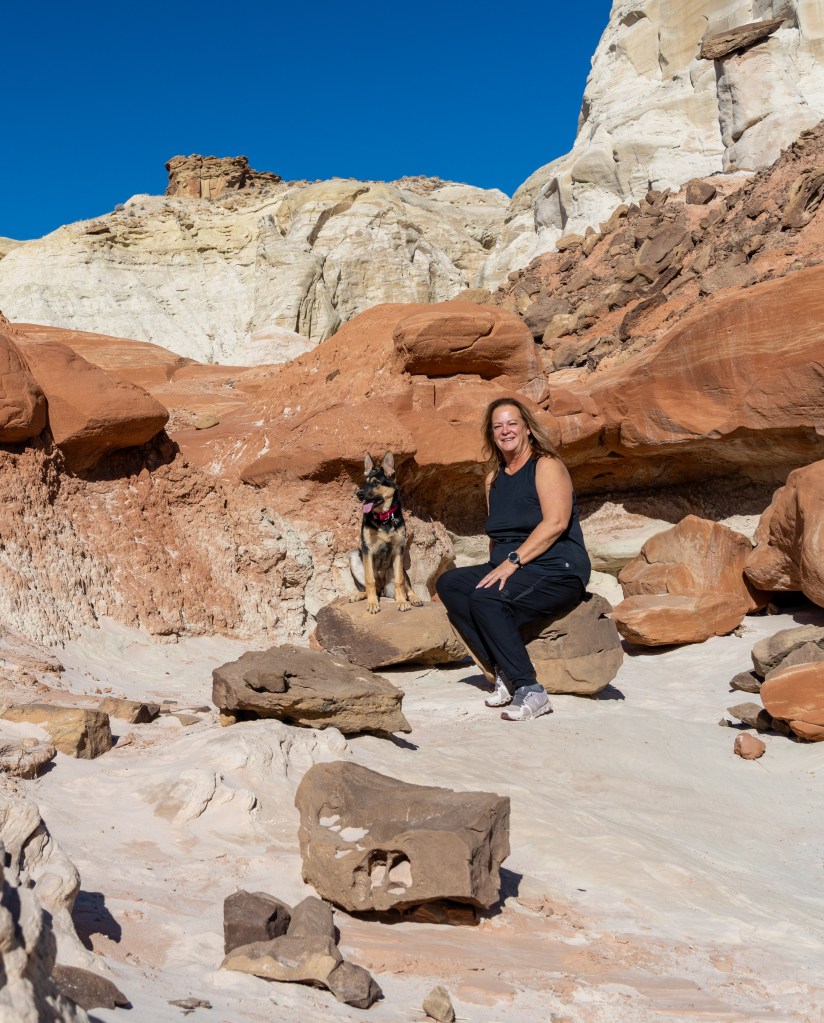 It took several tries to get Maddie to jump up on the big boulder and pose for me. But she eventually did it! She’s learning fast that Kelly wants her to pose for photo ops.