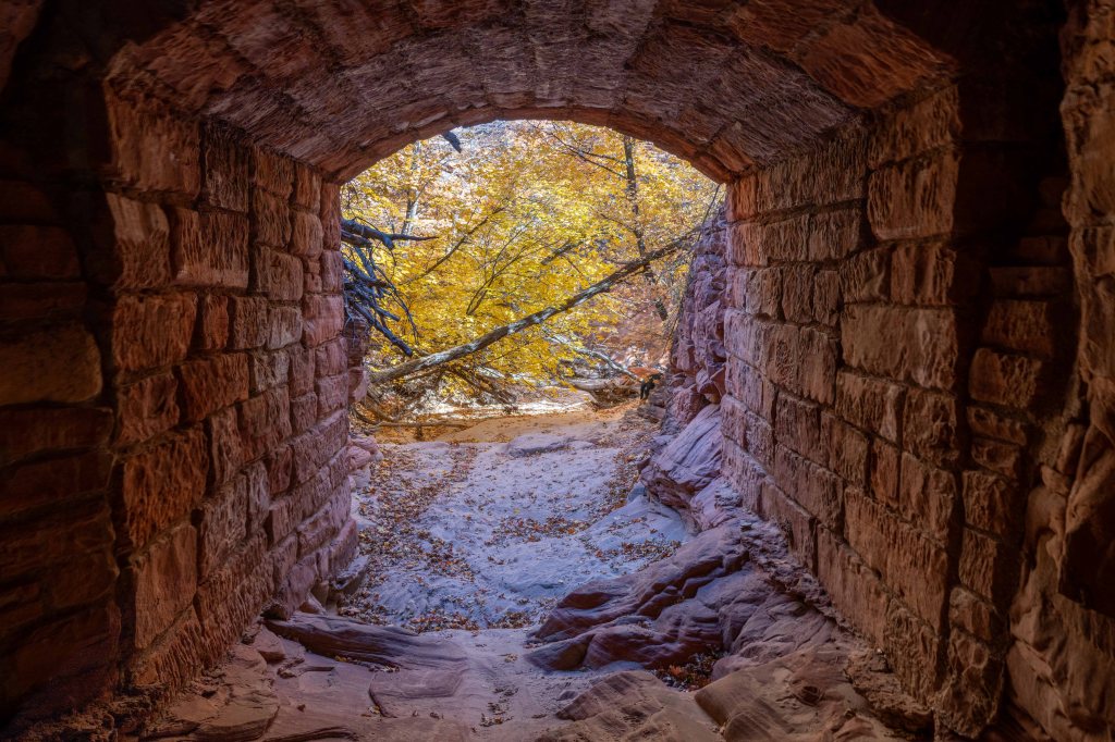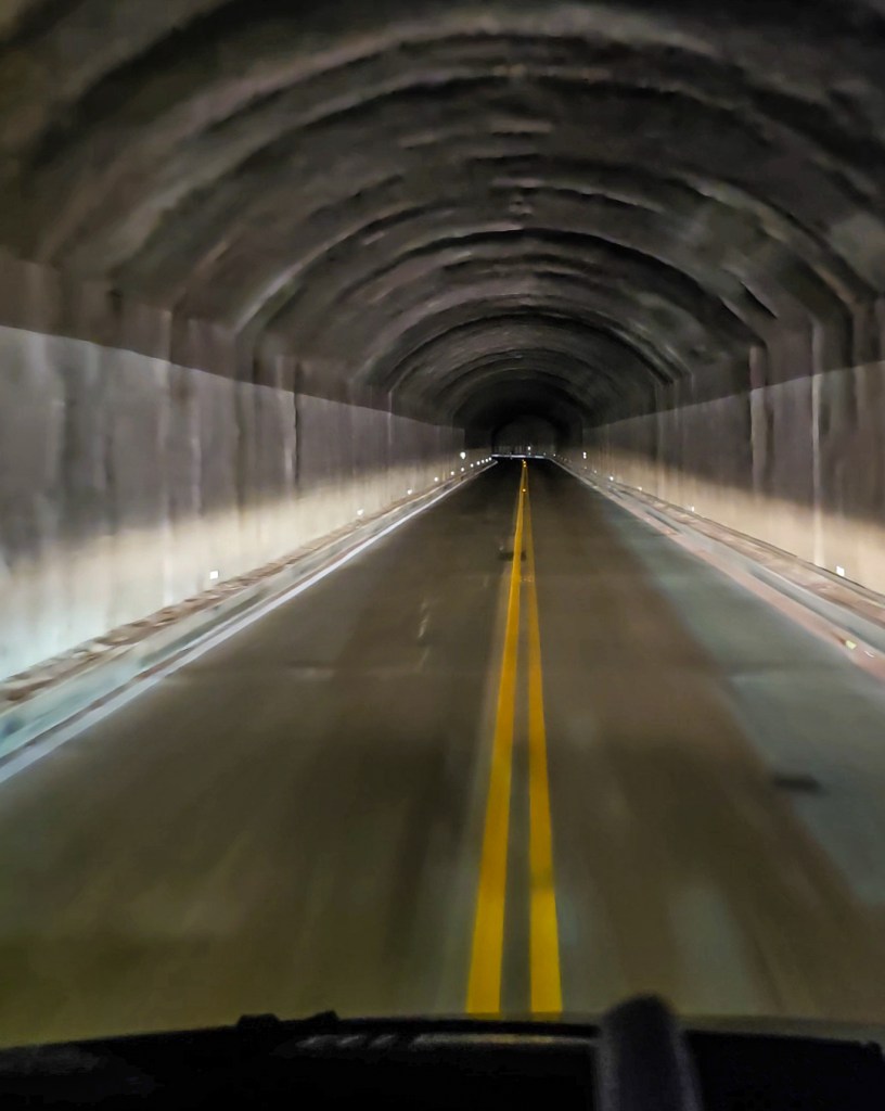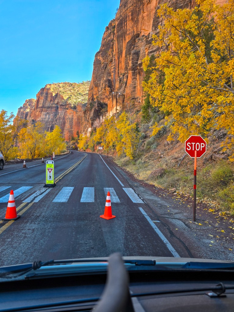 I was excited but nervous to drive my RV through the scenic Zion-Mount Carmel Tunnel on Highway 9. This tunnel was built in 1930 and is relatively the same as the day it was completed. The tunnel is a little over a mile long. If your vehicle is over 11’4″ tall or taller and/or wider than 7’10” wide, then you have to buy a Tunnel Permit that allows you to have two trips through the tunnel on the same day. The reason you need a permit, is because vehicles over these limits have to drive down the center of the tunnel in order to clear it. The roof was constructed in an arch design so the sides slope down on sides of the lanes. To be able to drive through the center of the tunnel, the traffic has to stop in the opposite direction. Also, you are only allowed to drive your oversized vehicle through the tunnel between the hours of 8 a.m. to 4:30 p.m.