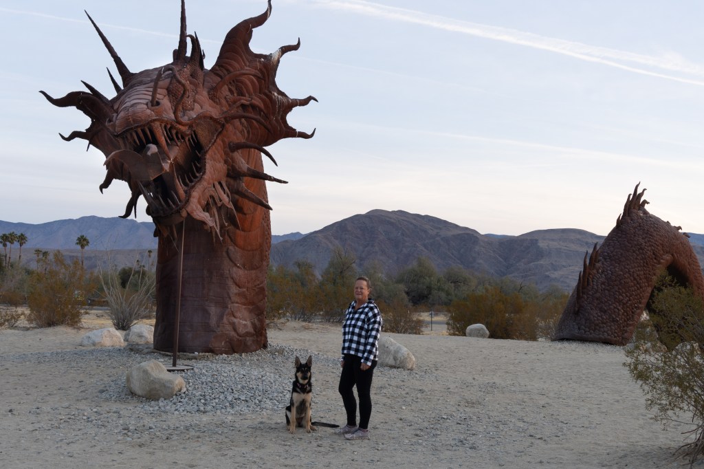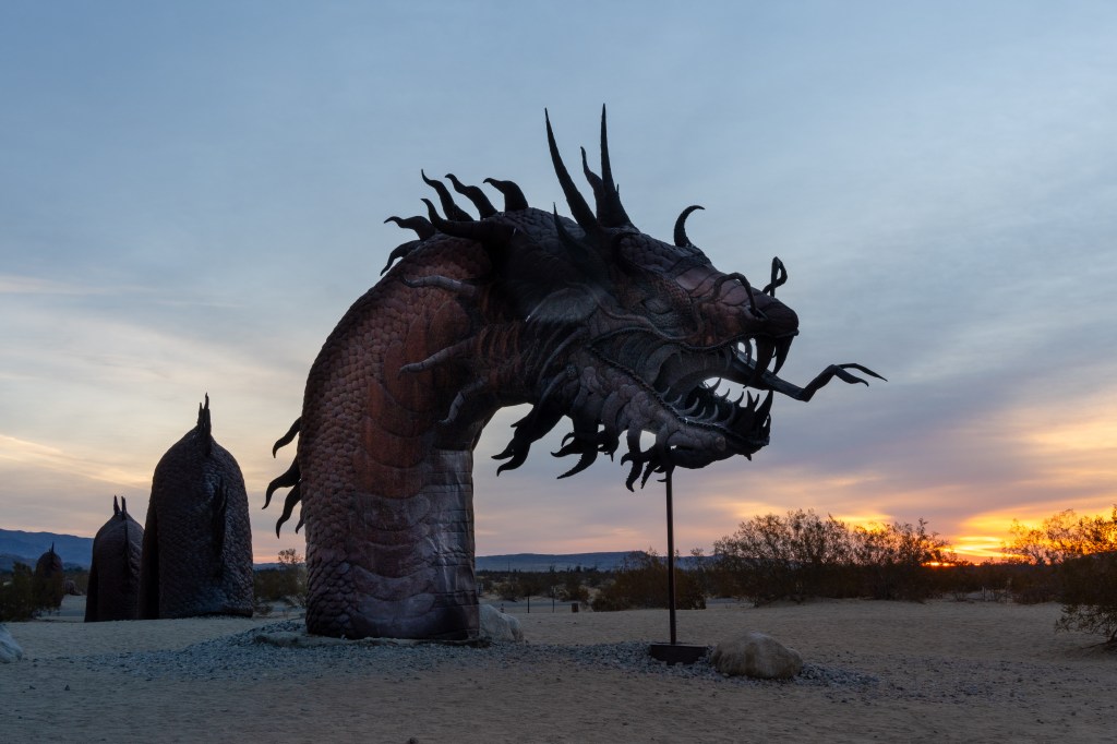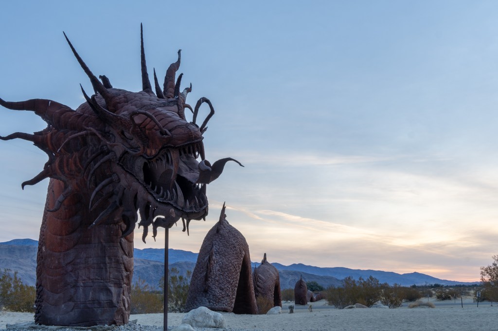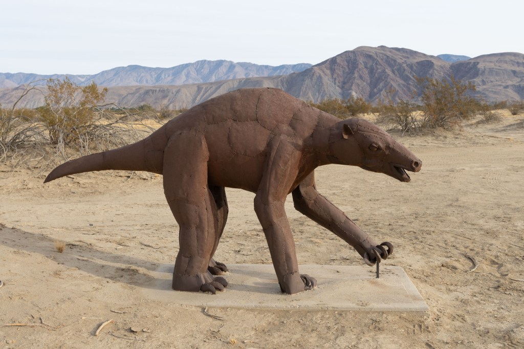 While I’m wintering here, I have planned several short trips to see and photograph some sights. And my first short trip was to Anza Borrego Desert State Park. It’s a small park east of San Diego, California. I have wanted to visit this park for several years. It’s known for it’s large metal sculptures just out in the middle of the desert.