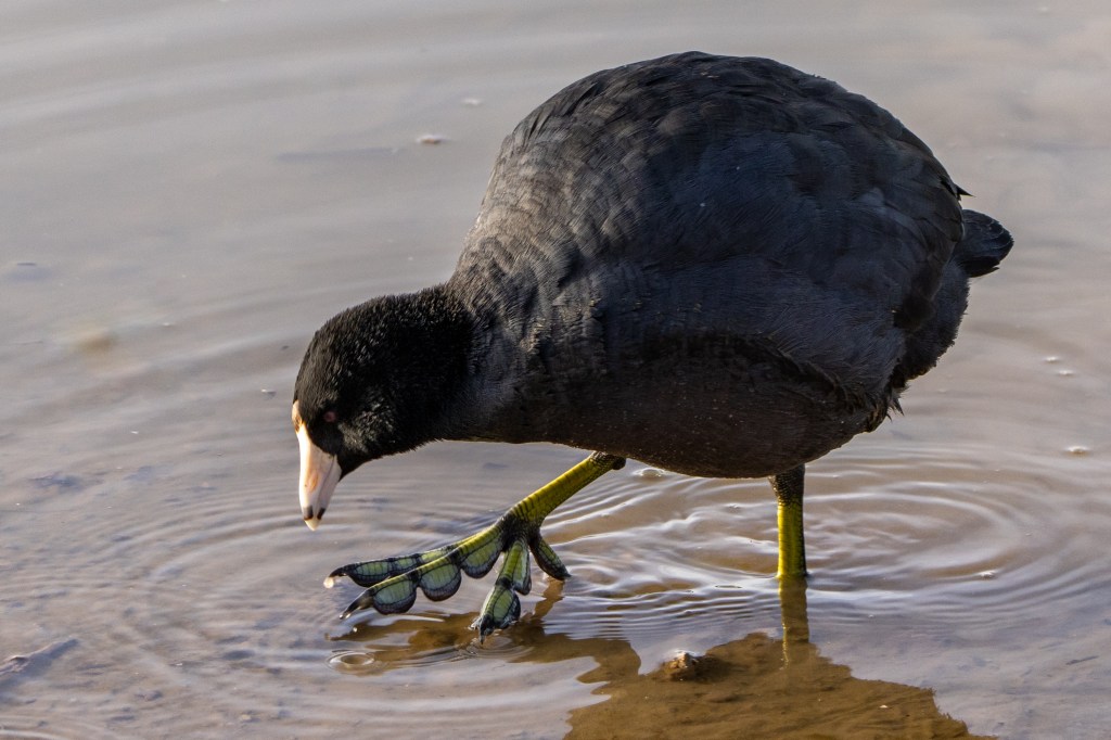 There were American Coots everywhere! I liked that I was able to capture one with his foot out of the water. I think they have the coolest feet! They are designed that way to enable them to walk atop the fallen reeds in the water.