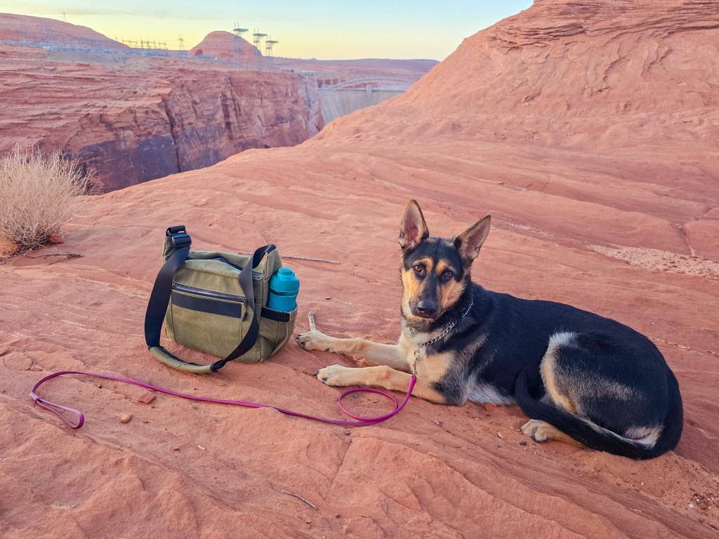 It was a wonderfully warm evening so I set up next to the cliffside to capture a sunset photo of the Colorado River. Maddie came along to keep me company and keep me safe.
