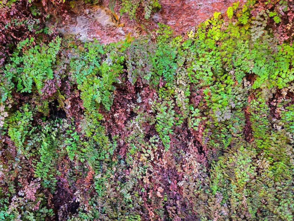 The grotto faces north so it never gets direct sunlight. A perfect environment for the ferns.
