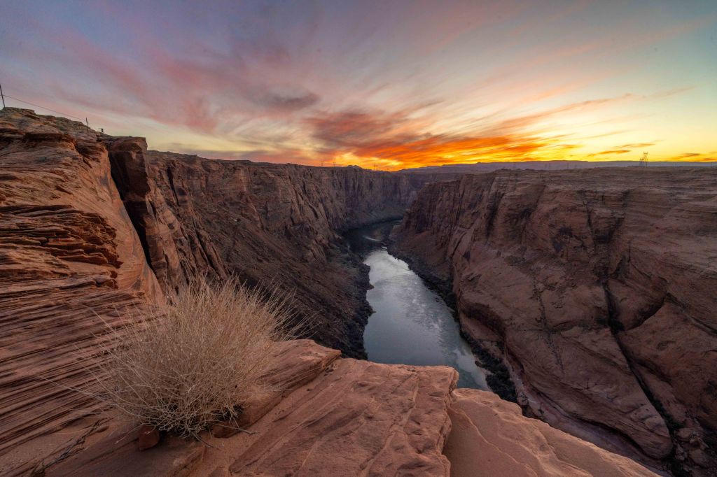 I stayed one night in Page, Arizona. I love this little town that sits right next to the Colorado River. I arrived later in the day. I found a wonderful parking spot for the night. I parked next to the Colorado River right across from Glen Canyon Dam. It was a short walk over to the river. It’s quite a deep gorge where the dam is located.