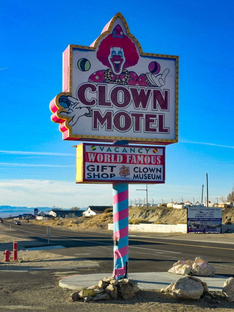 I have been a long-time fan of Ghost Adventures. If you are too, then you will remember the episode featuring the Clown Motel. Zak Baggins was sure afraid of all the clown dolls! Well, that hotel and gift shop are right here in Tonopah. I had forgotten it was here until I drove by. It’s kind of a creepy place even during the day!