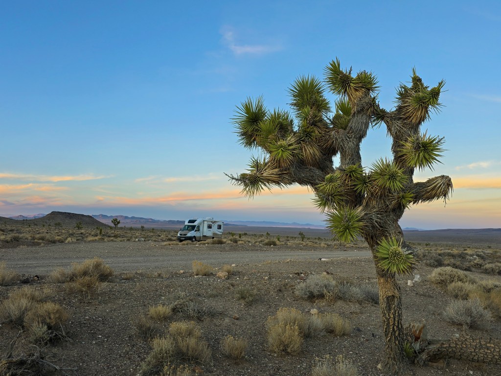 After driving through Tonopah, I decided to stop for the night. I found a great little campsite about a 1/2 mile from the highway. It was quiet and beautiful with the Joshua Trees. There were also wild donkeys around – so cool!