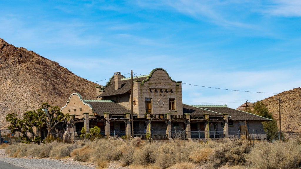 In the 1920s, the town enjoyed a small revival through tourism. The train depot was turned into a casino on the main floor. Downstairs had your more illicit games, and upstairs was staffed by “soiled doves”. The onset of World War I ended the little town of Rhyolite.