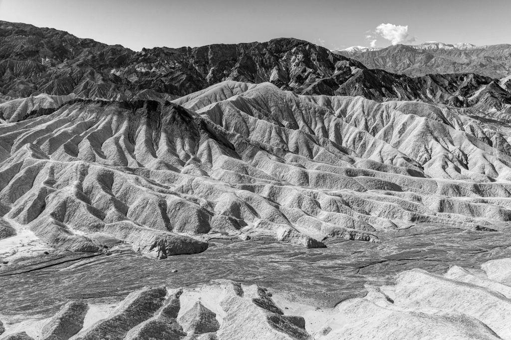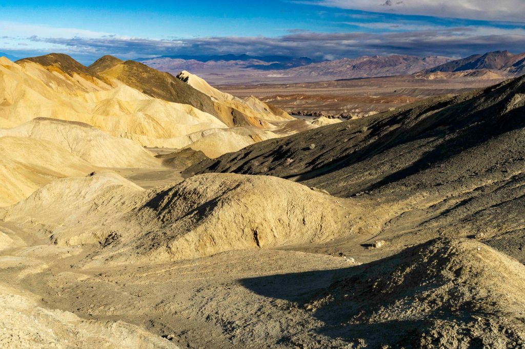 From the vantage point of Zabrinski Point, the view below was spectacular! I love this photo! I love all the texture created from erosion. The contrasts of light and shadow make your eye wander all over the photo.