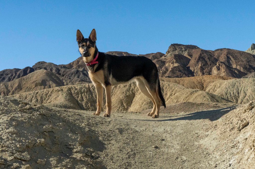I visited Death Valley around mid-February. I couldn’t believe how warm it was at that time of year. When I arrived, it was mid 70s during the day and low 50s at night. Beautiful! It was nice to break out the shorts and sandals. Maddie wasn’t as excited as I was about the warm weather LOL!