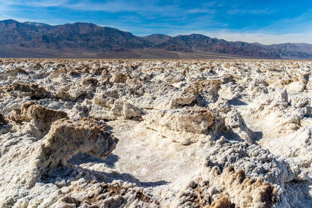Another feature in the badwater basin was the Devil’s Golf Course. It’s an area where the salts of the valley floor have been shaped into unique formations. You had to be careful walking out there as these salt formations were jagged and sharp.