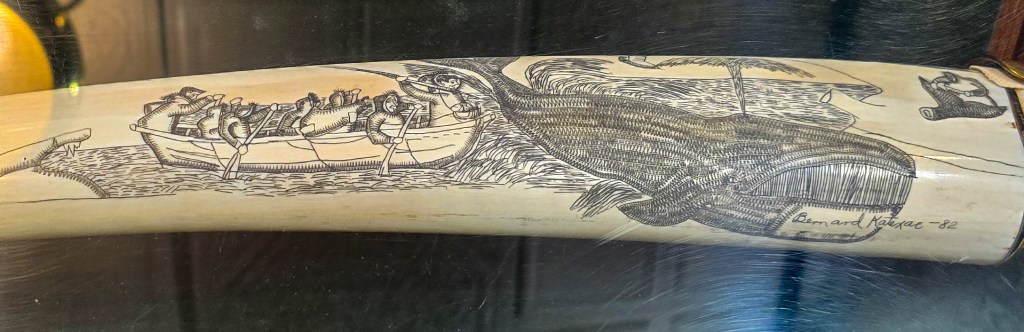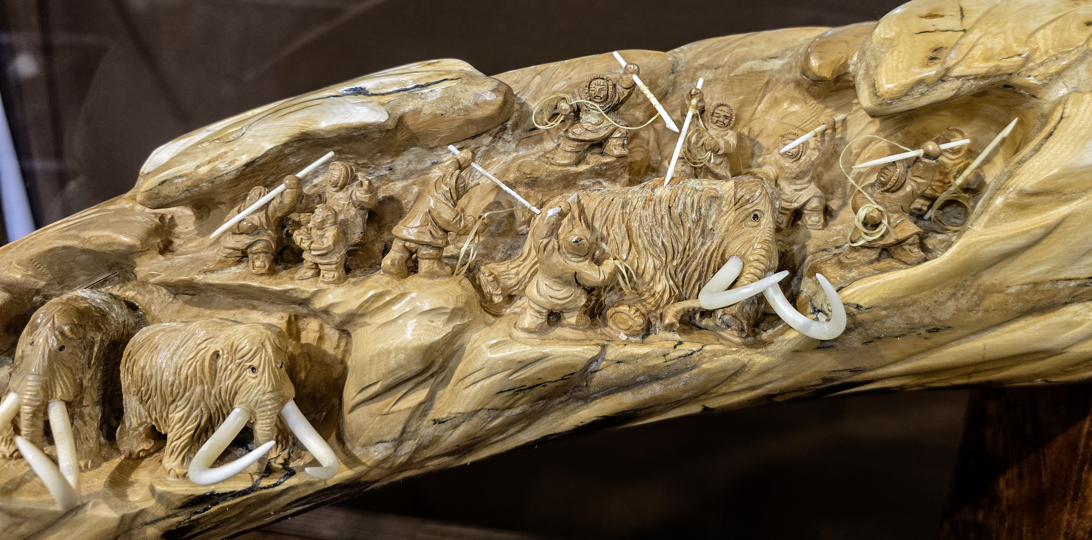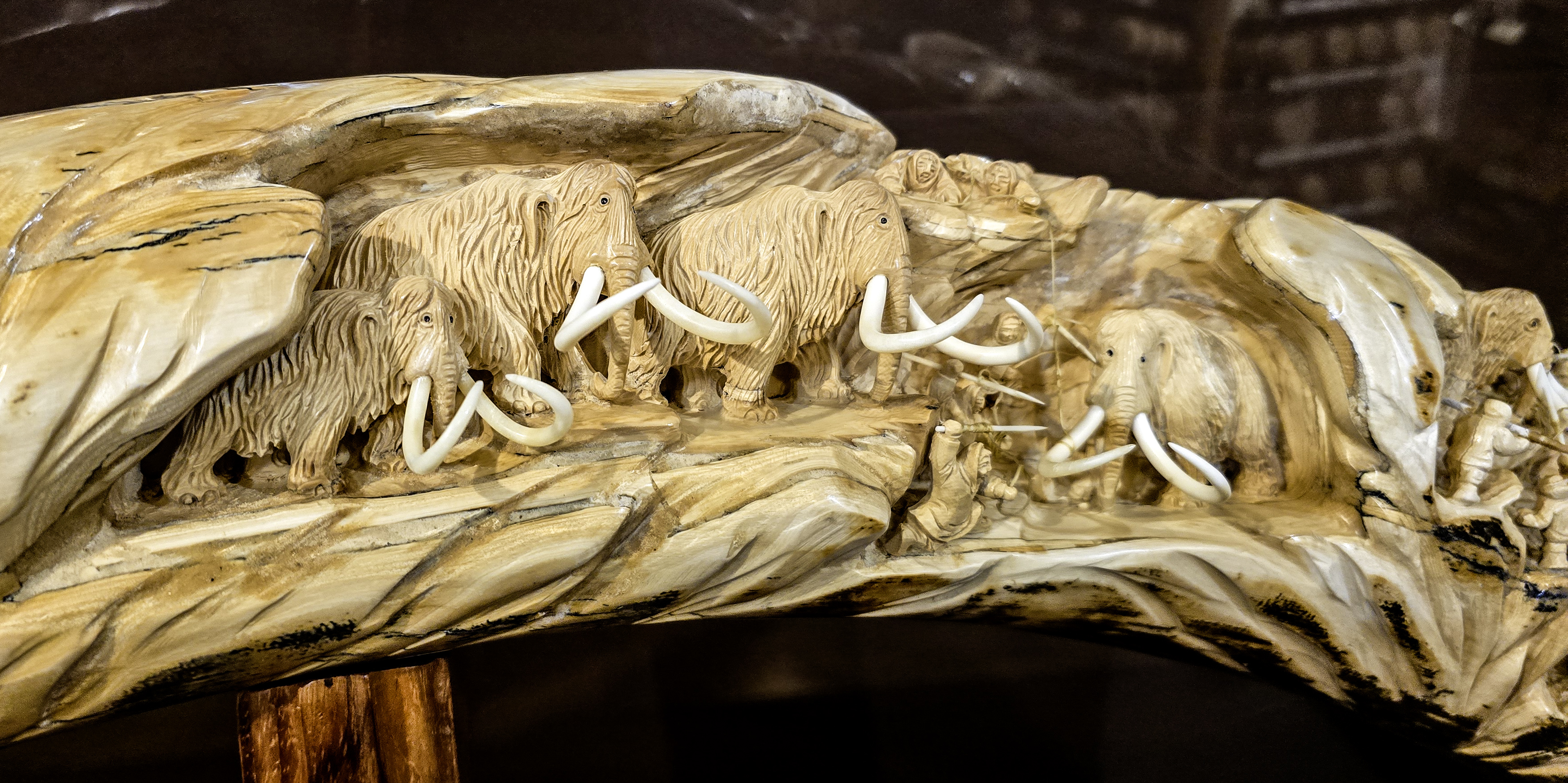 I was amazed at this detailed Wooly Mammoth hunt carved into a walrus tusk.